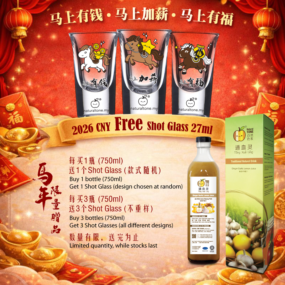 Natural Tone Minuman Botani Halia dengan Bawang Putih dan Lemon merupakan minuman semulajadi yang hebat kerana ia mangandungi sifat penyembuhan semulajadi yang didapati dari ramuan-ramuan asli seperti halia, bawang putih, jus lemon, madu dan cuka epal cider. Tanpa pengawet, tanpa pewarna & perisa, tanpa bahan kimia aditif.