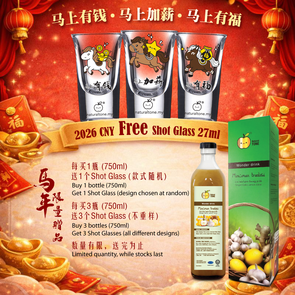 Natural Tone Minuman Botani Halia dengan Bawang Putih dan Lemon merupakan minuman semulajadi yang hebat kerana ia mangandungi sifat penyembuhan semulajadi yang didapati dari ramuan-ramuan asli seperti halia, bawang putih, jus lemon, madu dan cuka epal cider. Tanpa pengawet, tanpa pewarna & perisa, tanpa bahan kimia aditif.
